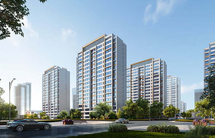 住宅立面線條,簡(jiǎn)約流暢、輪廓分明,不同地塊建筑色彩分區(qū)規(guī)劃,結(jié)合低彩度、高明度的米白、暖白、香檳金等色彩,形成豐富有序的色彩組合。在近人尺度部位、檐口、頂部造型等,采用金屬鋁板、金屬線條等高品質(zhì)材料打造,彰顯匠心精致,體現(xiàn)時(shí)代精神。