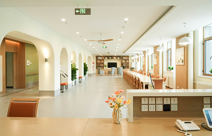 在適老化空間,我們結(jié)合老年人行為、心理等特性,認(rèn)為在康氧環(huán)境中設(shè)置無障礙設(shè)施尤為重要,不僅僅體現(xiàn)于無障礙通道或電梯,還包括視線監(jiān)視與近便的服務(wù)動線設(shè)計。