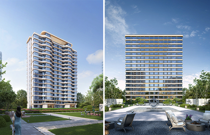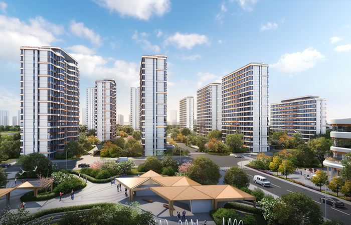 建筑立面上為體現(xiàn)立面的豐富性,分區(qū)設(shè)計(jì)。立面呼應(yīng)潺潺流水意向,采用弧形優(yōu)雅曲線,追求建筑柔美靈動(dòng)之感。綜合社區(qū)服務(wù)中心則在未來(lái)感與現(xiàn)代感的基礎(chǔ)上,注重增加動(dòng)感和活力,彰顯時(shí)尚城市品位。
