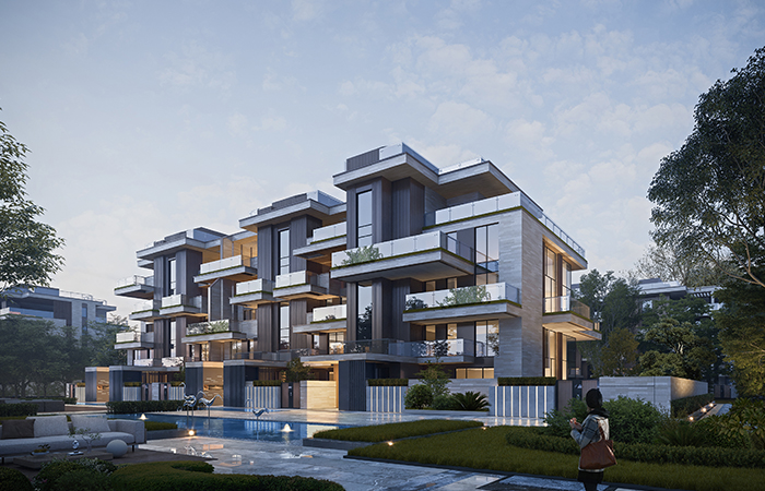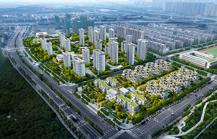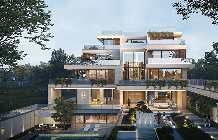 項目致力于與自然環(huán)境和諧共生,追求高度的內涵審美、特殊的空間氛圍營造和新穎的視覺符號傳達,以太平河及臥虎山城市級景觀資源為依托,以東方美學為引領,傾力打造低密度百年住宅典范。同時創(chuàng)新性置入4 大設計專利,首創(chuàng)“首層架空-室外會客廳”和“自然采光-陽光車庫”,通過架空、挑空、下沉、露臺等塑造,賦予住區(qū)更為豐富的空間層次感和自然融入度,著力營造詩意棲居的創(chuàng)新空間場景,鐫刻人居文明的新標桿。