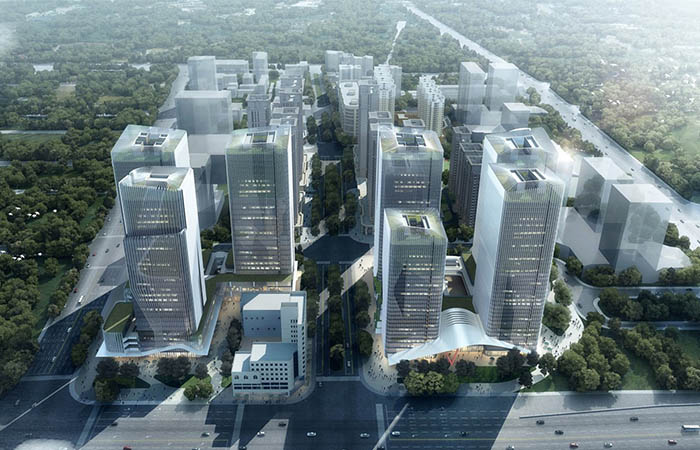 建筑立面提取中國傳統(tǒng)山水文化理念,將自然的意境轉(zhuǎn)換為建筑中的意象運(yùn)用在建筑語言上;將自然的詩意帶入城市,在高密度、快節(jié)奏的區(qū)域重構(gòu)建筑和環(huán)境的共生關(guān)系,通過豎向的立面肌理與自然有機(jī)的曲線相結(jié)合,創(chuàng)造具有情感性、歸屬感的自然意境和具有標(biāo)示性的城市形象。