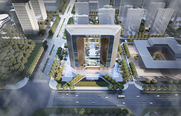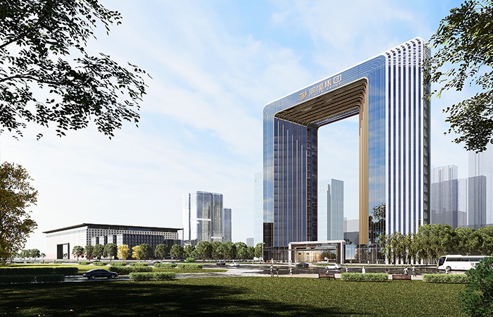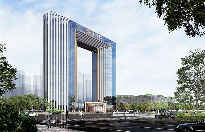 項(xiàng)目位于正定新區(qū)“四軸五心”的中央商務(wù)辦公區(qū)域內(nèi),隆興路商務(wù)軸北側(cè),由兩棟塔樓組成,功能為展廳、會(huì)議和辦公,總建筑面積5.8萬(wàn) m2,其中地上建筑面積4.2萬(wàn) m2。兩棟塔樓均為地下一層,地上21層,裙房2層,建筑高度100.85m,結(jié)構(gòu)高度86.700m。兩棟塔樓平面為八邊形,兩塔樓最近點(diǎn)距離約36.6m,最遠(yuǎn)點(diǎn)距離約108.1m。建筑頂部設(shè)置八邊形造型和空中連廊與塔樓連為一體,“大道至簡(jiǎn),天下大同”,形成大底盤雙塔連體建筑。