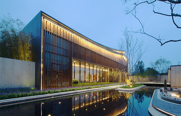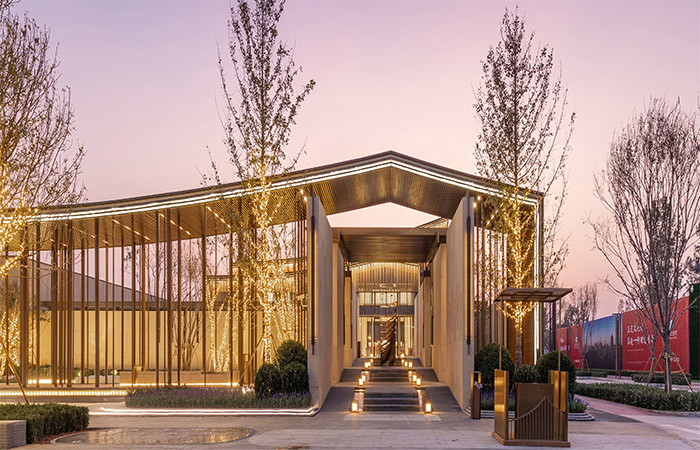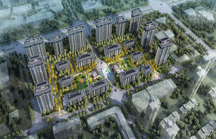 以薈萃城市頂級資源,引領城市未來居住所向為主旨。立面風格上,住宅以新中式風格為主調(diào),形體上采用對稱的構(gòu)圖,主體顏色采用米白色與淺灰色,整齊大氣的立面能夠規(guī)整城市沿街面,提升城市形象。