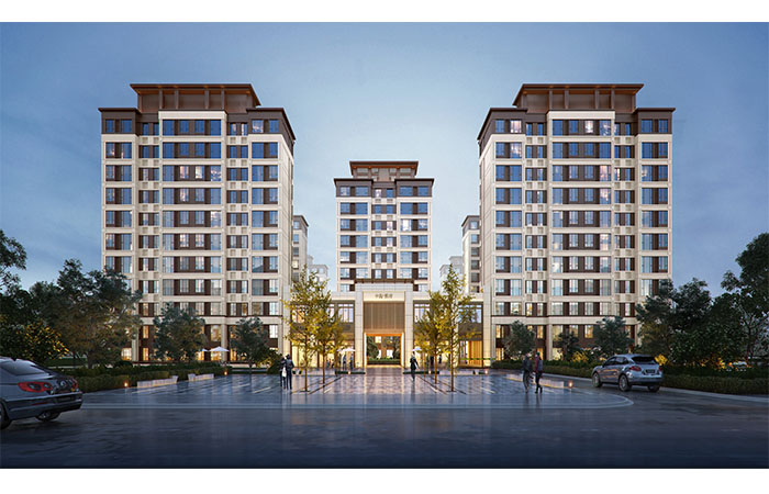 地塊形成南北向和東西向兩條景觀軸,南北主軸為本項目景觀設計重點部位,力爭打造“園中有筑,筑即為景”的建筑與景觀結(jié)合的典范中軸系統(tǒng)。地塊形成四個分區(qū)。序列性景觀節(jié)點,形成多重禮儀空間,傳承中國的空間禮序。通過中軸建筑的錯落式布局,形成多個半圍合式的居住組團空間。