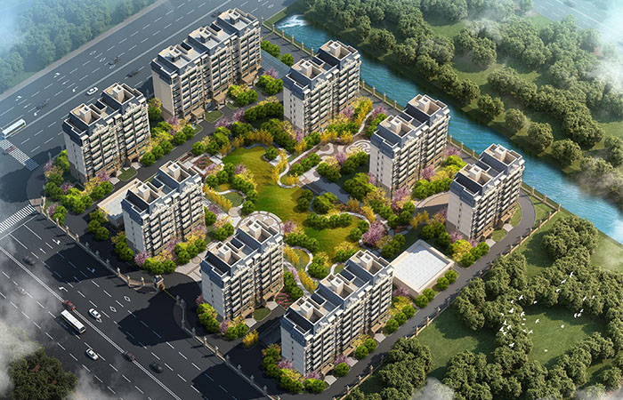 建筑造型采用西法風情建筑風格,墻體色彩以較為穩(wěn)重的褐色仿面磚真石漆,配以米黃色線腳。建筑底部處于近人范圍,建筑造型與細部強化處理,與優(yōu)美的庭院景觀相得益彰,共同營造溫馨浪漫的社區(qū)氛圍。建筑中段簡潔明快,韻律感強。建筑頂部通過造型變化,造型優(yōu)美精巧,形成小區(qū)標志性的建筑特色。