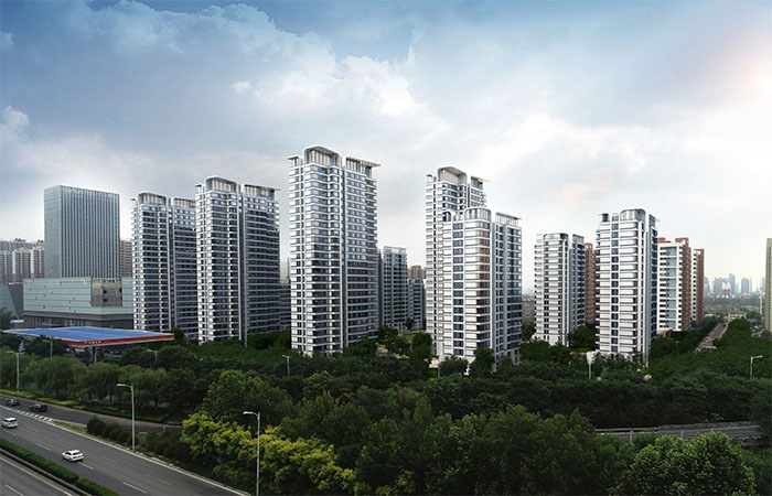 建立宜人的空間尺度,樓間距以50多米為主,地面空間與建筑高度能形成1:1的宜人比例,適宜居住。小區(qū)外圍高低起伏,沿二環(huán)路,由南向北依次升高,塑造出優(yōu)美的天際線。內部均勻過度,以18F為主,北側受日照影響,布置11層住宅,同時降低對北側道路的壓迫。外部與城市交通聯(lián)動,結合城市交通規(guī)劃車行出入口,最大程度的緩解城市交通壓力。采用人車分流。實現(xiàn)出則繁華,入則靜謐。