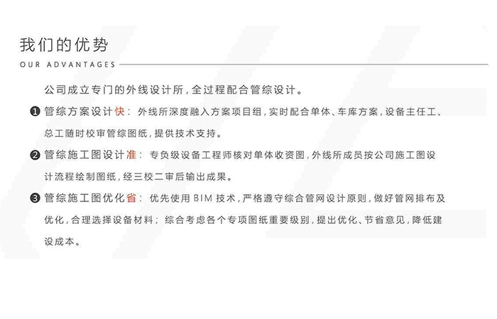 施工圖管綜設(shè)計:依據(jù)室外管線綜合方案圖及各專業(yè)的單體施工圖,繪制室外管線綜合平面圖,然后各專業(yè)按照管線綜合平面圖繼續(xù)深化相關(guān)圖紙。