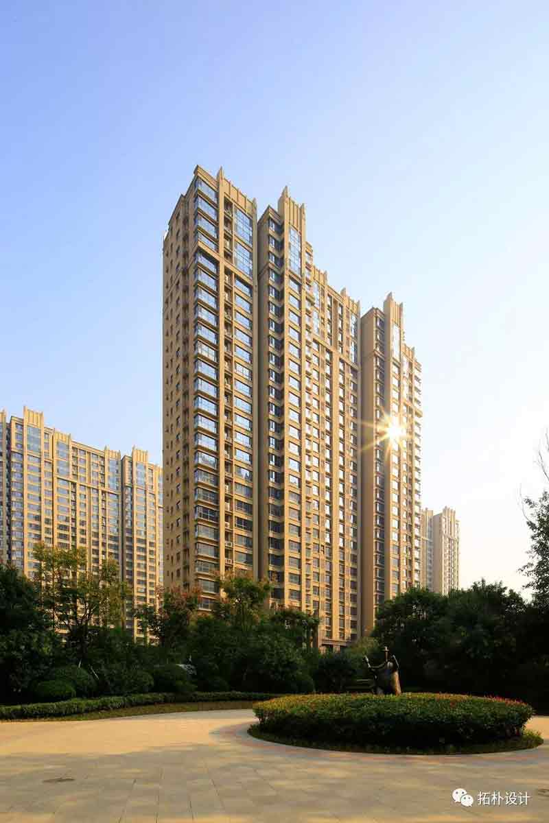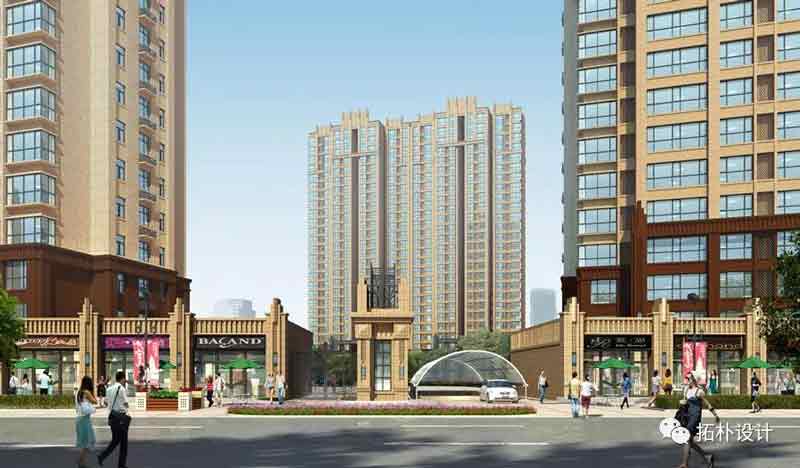 項(xiàng)目建筑采用ART-DEC0建筑風(fēng)格,盡顯華貴堅(jiān)實(shí)、 細(xì)部裝飾細(xì)膩豐富。通過采用剛?cè)岵?jì)的豎向線條,建筑高聳向上的外立面,體現(xiàn)出建筑奢華、精致、大氣的氣度,能夠表達(dá)出居者不斷向上,積極進(jìn)取的精神。