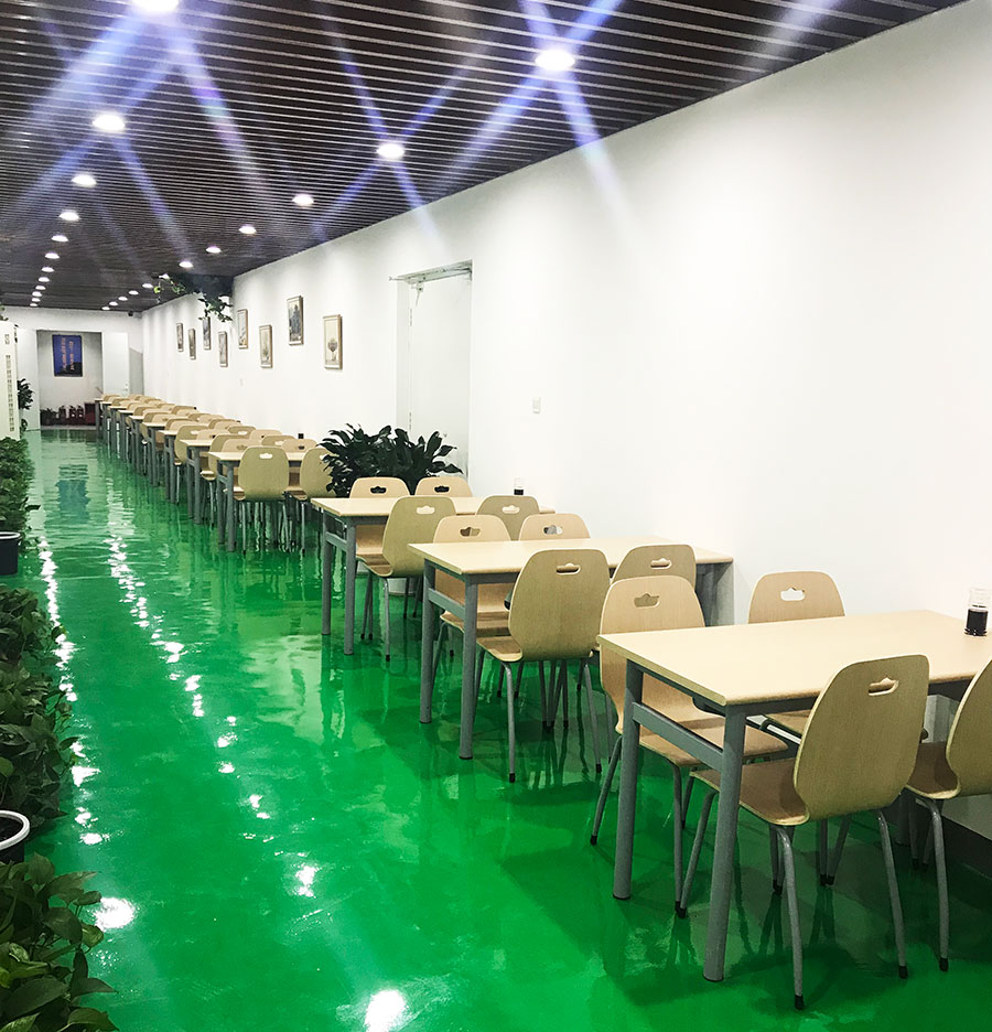 如蔭的綠植,溫馨的燈光,嶄新的桌椅整齊排,小清新的壁畫養(yǎng)人眼消過毒的餐具發(fā)著亮光。