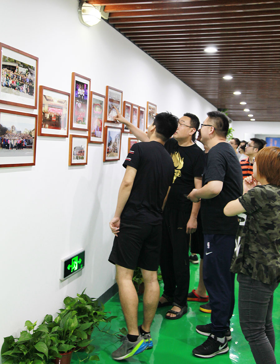 幽長的通道上,一面照片墻上記錄拓樸家人的美好時光