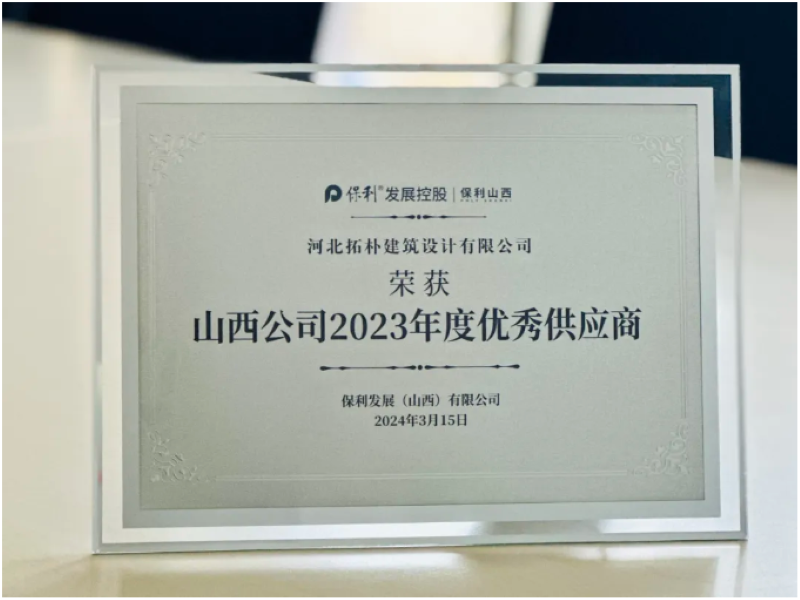 喜報(bào)|拓樸設(shè)計(jì)山西分公司榮獲“保利發(fā)展2023年度優(yōu)秀供應(yīng)商”獎(jiǎng)
