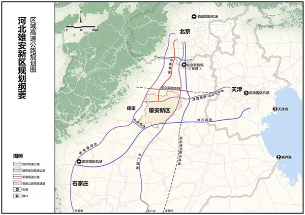 完善高速公路網(wǎng)。構(gòu)建“四縱三橫”區(qū)域高速公路網(wǎng)!八目v”為京港澳高速、大廣高速、京雄高速(含新機場北線高速支線)、新機場至德州高速,“三橫”為榮烏高速新線、津雄高速、津石高速,實現(xiàn)新區(qū)60分鐘到北京、天津,90分鐘到石家莊。加強新區(qū)與天津港(9.140, -0.19, -2.04%)、黃驊港交通聯(lián)系,暢通新區(qū)出海通道。